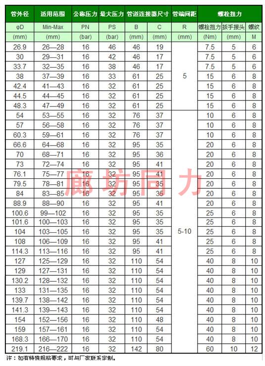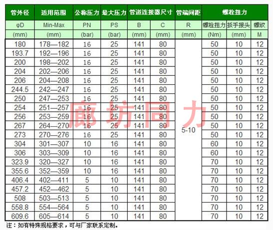 應用領域:應用于船舶、電廠、輸油、輸氣、給排水及污水處理等管道工程以及應用在油田采油廠、天然氣、煤氣、給排水管道緊急搶修作業等領域,使管道的連接施工更加方便、可靠、安全。